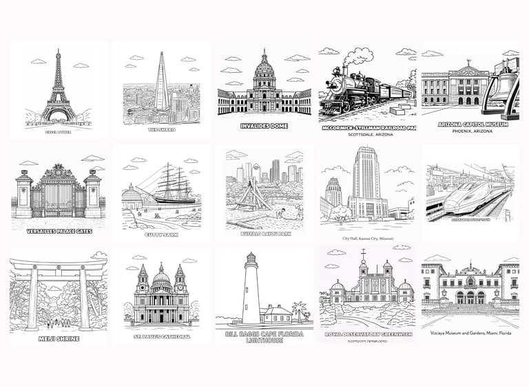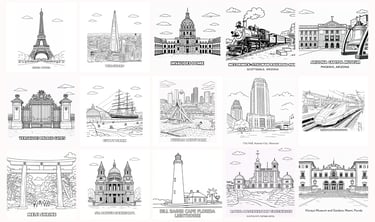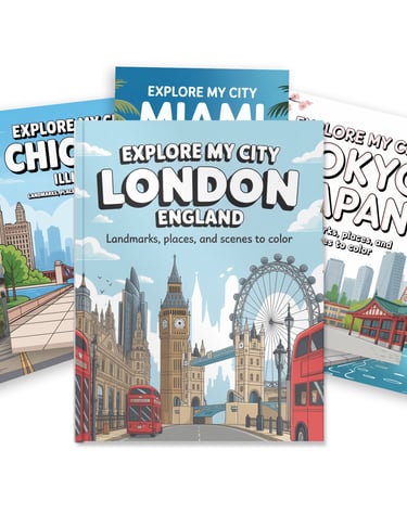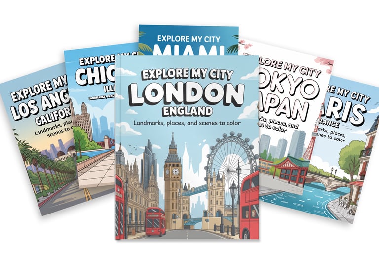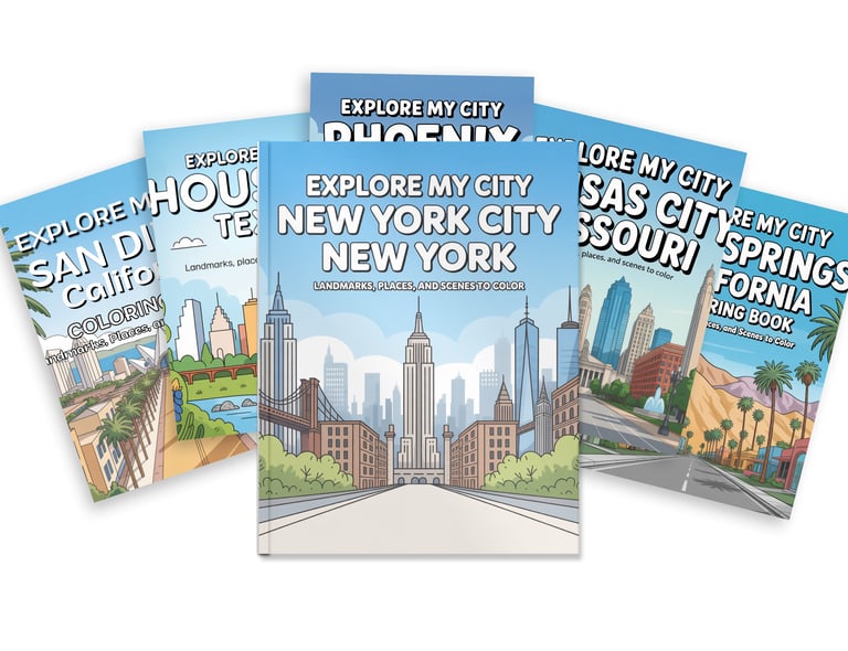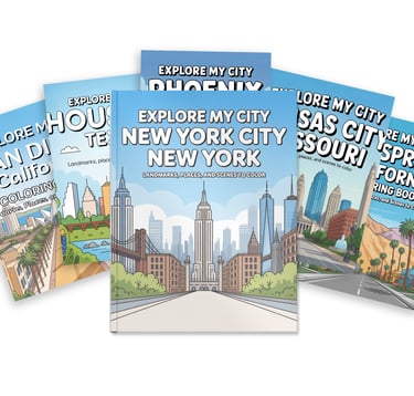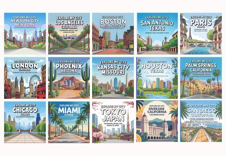 The Explore My City coloring book collection helps children learn about geography, culture, and community through creativity. Each book features carefully illustrated landmarks and city scenes designed specifically for kids, making it easy to color while still being accurate and educational.