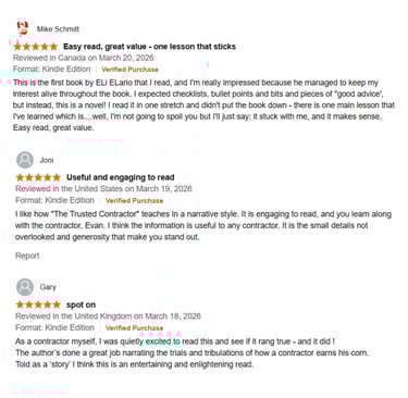 Each book in the series is a standalone parable built around one tradesperson, one mentor, and one client relationship that went wrong. The lessons are practical, the stories are honest, and the language is written for people who work with their hands and do not have time for business books that talk around the point.
